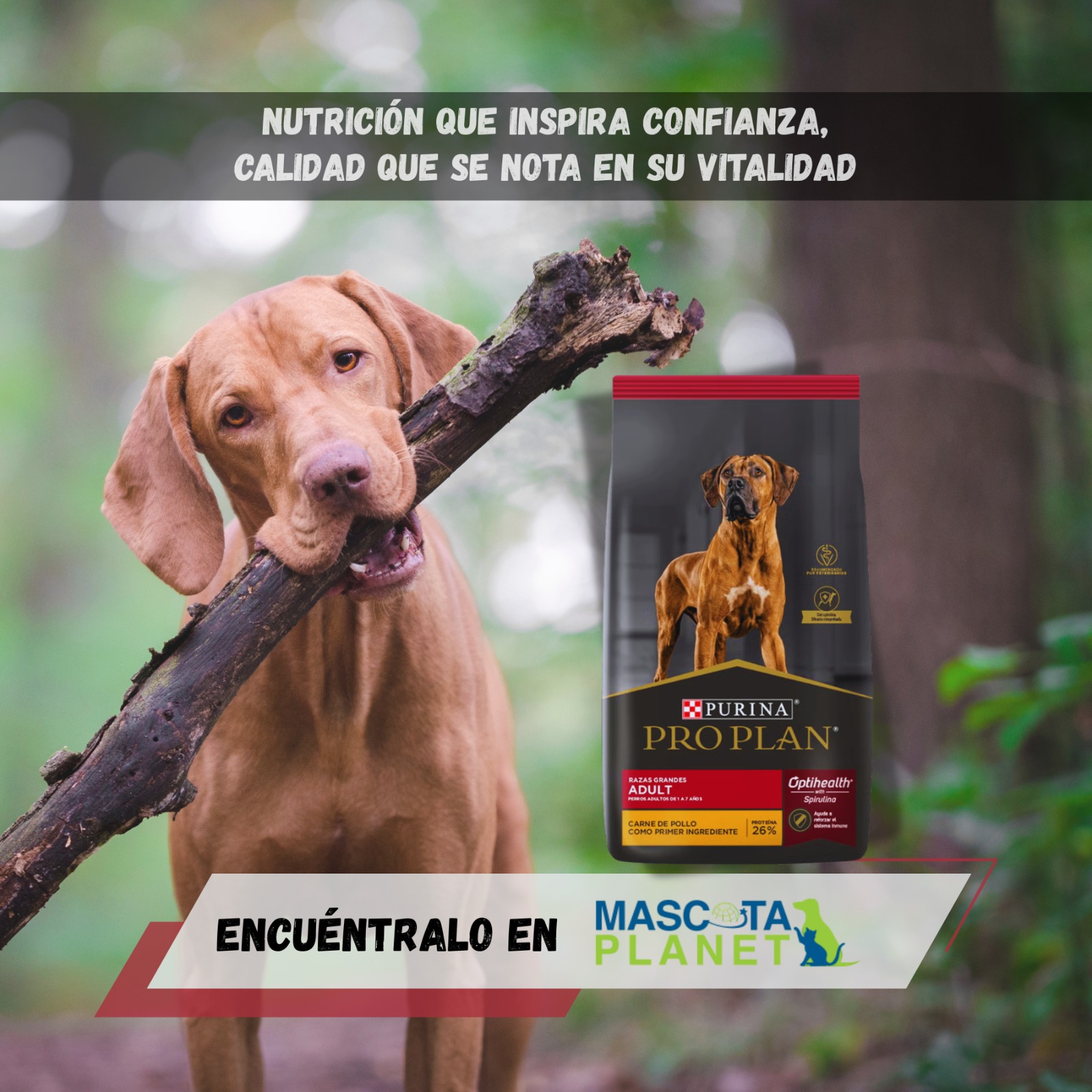 Carne de Pollo, Arroz, Harina de Subproductos de Pollo (fuente natural de Glucosamina), Maíz, Trigo, Harina de Gluten De Maíz, Grasa Vacuna y/o Aceite de Pollo Preservados con Tocoferoles Mezclados (Fuente de Vitamina E), Digesto Animal (A Base de Subproductos de Pollo y/o Porcino), Fibra de Soja y/o Salvado de Maíz, Carbonato de Calcio y/o Fosfato Bicálcico, Sal, Cloruro de Potasio, Huevo en Polvo , Aceite de Pescado, L-Lisina, Spirulina (Arthrospira Platensis), Cloruro de Colina, Suplementos Vitamínicos (A, D3, E, B12), Dl-Metionina, Levadura Seca (Saccharomyces cerevisiae ssp), Sulfato de Zinc, Proteinato de Zinc, Sulfato Ferroso, Sulfato de manganeso, Proteinato de manganeso, Sulfato de cobre, Proteinato de cobre, Iodato de calcio, Selenito de sodio, BHT, Niacina, Pantotenato de calcio, Suplemento de Riboflavina, Mononitrato de tiamina, Ácido fólico, Clorhidrato de piridoxina.